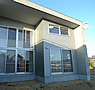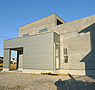 見慣れない外壁素材が特徴のモダンな二世帯住宅です。
